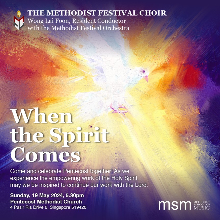 “When the Spirit Comes” promises an evening filled with inspiring music presented by the Methodist Festival Choir and Orchestra, as we commemorate Pentecost and the empowering presence of the Holy Spirit.